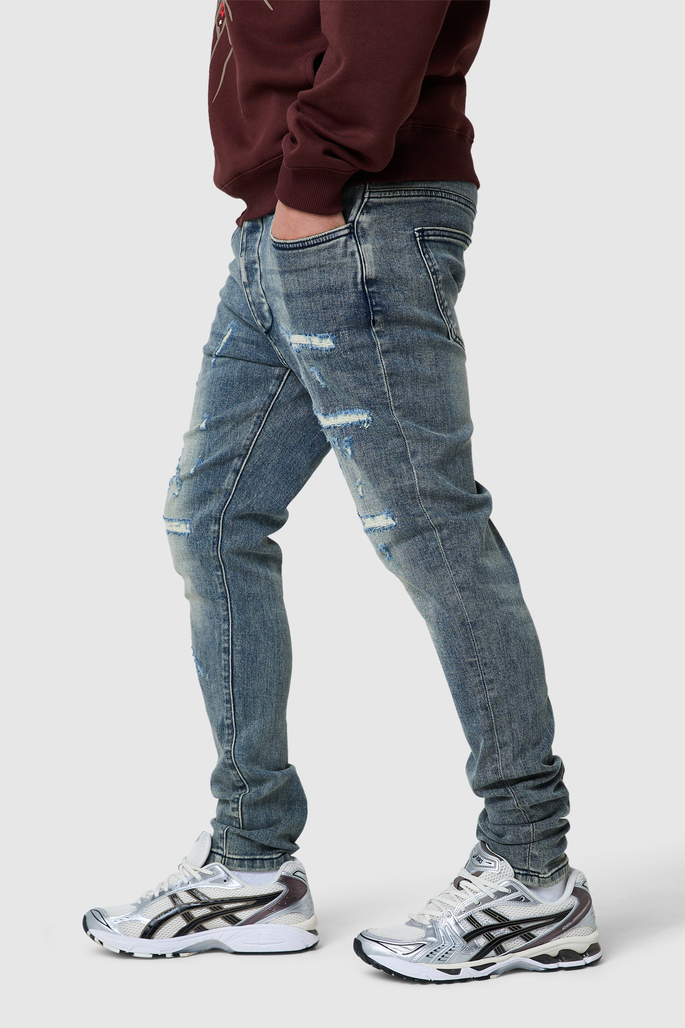 A versatile denim staple with a worn-in feel. The Arteon Jean in Vintage Blue is cut for a streamlined silhouette with natural stack through the ankle, crafted from stretch denim for comfort and everyday movement. Finished with subtle detailing that gives each pair its own character.