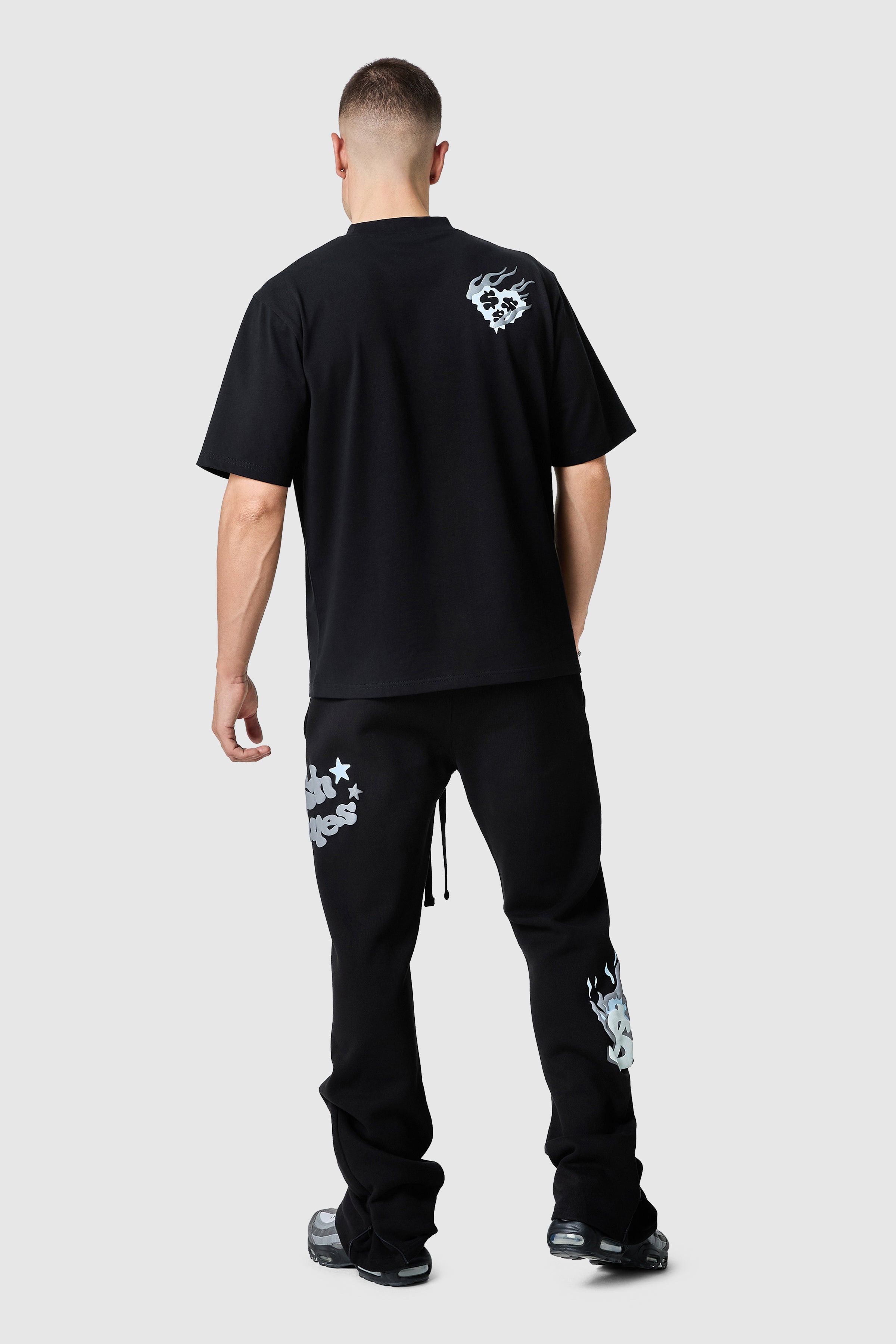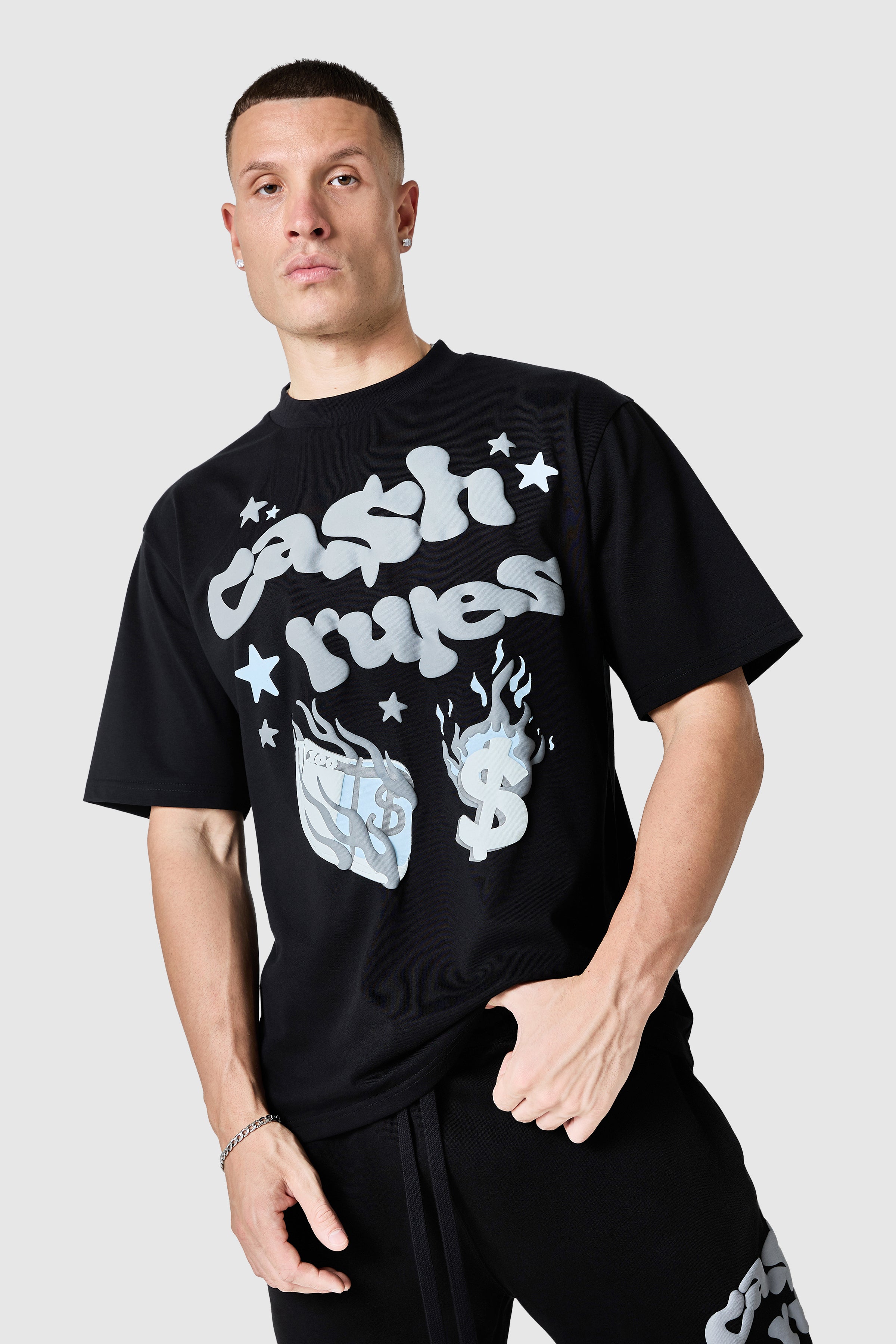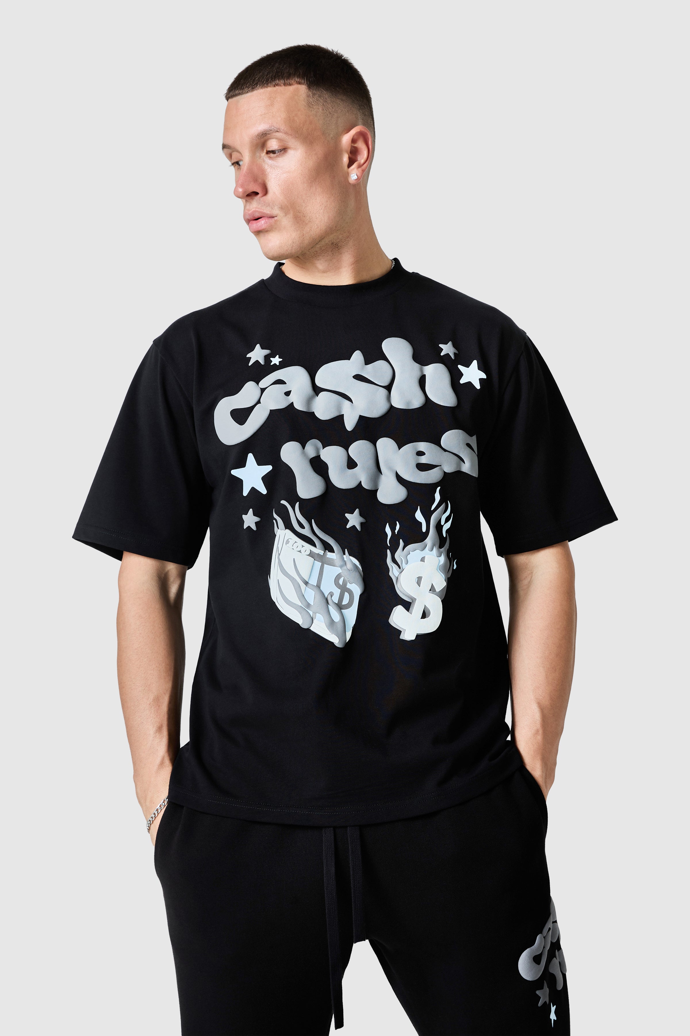 The Cash Rules Tee has relaxed silhouette with a dropped shoulder. The front and our camo back graphic gives this piece its statement identity, easy to style across denim or complete the look with the matching relaxed Jogger.