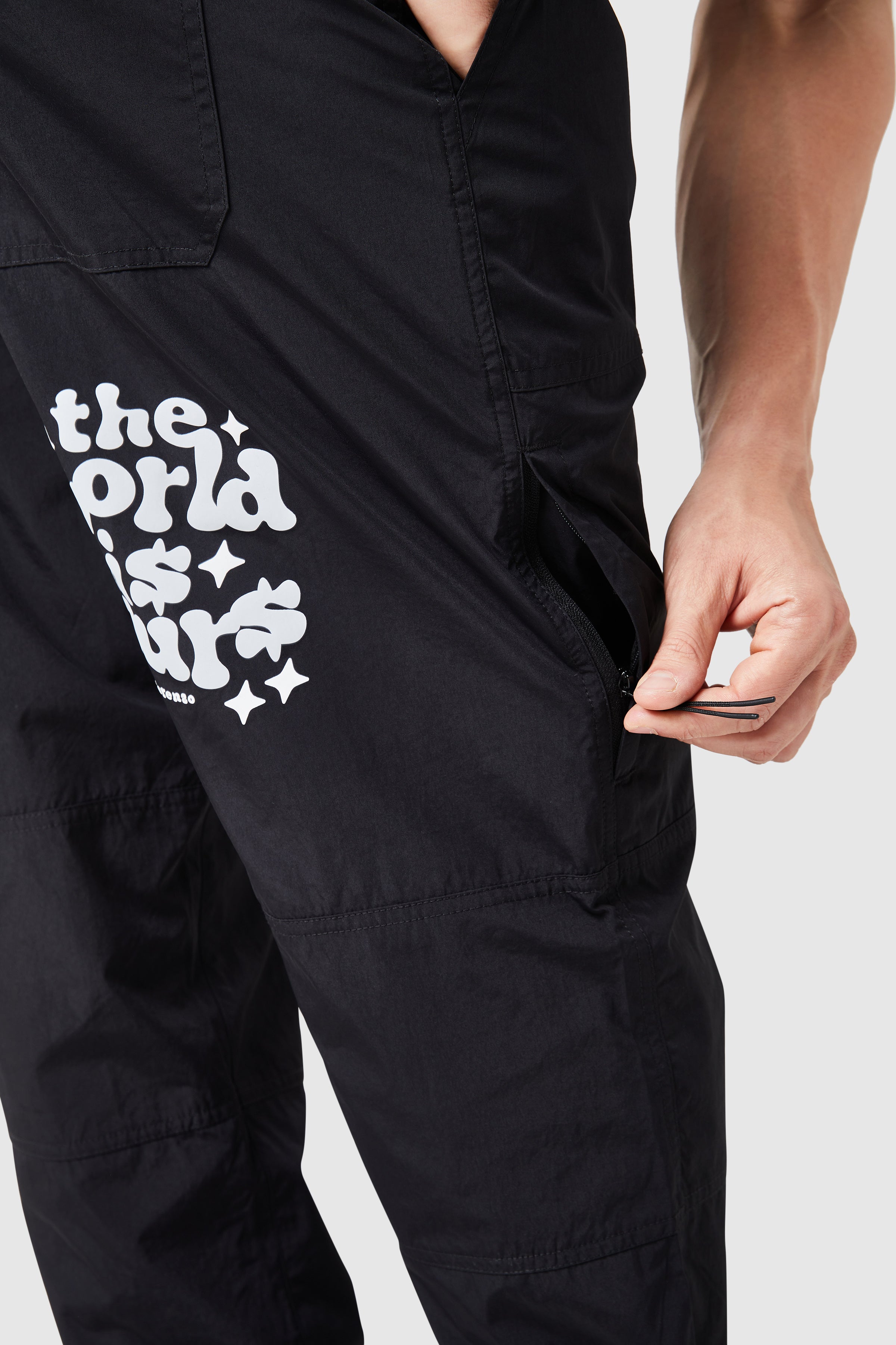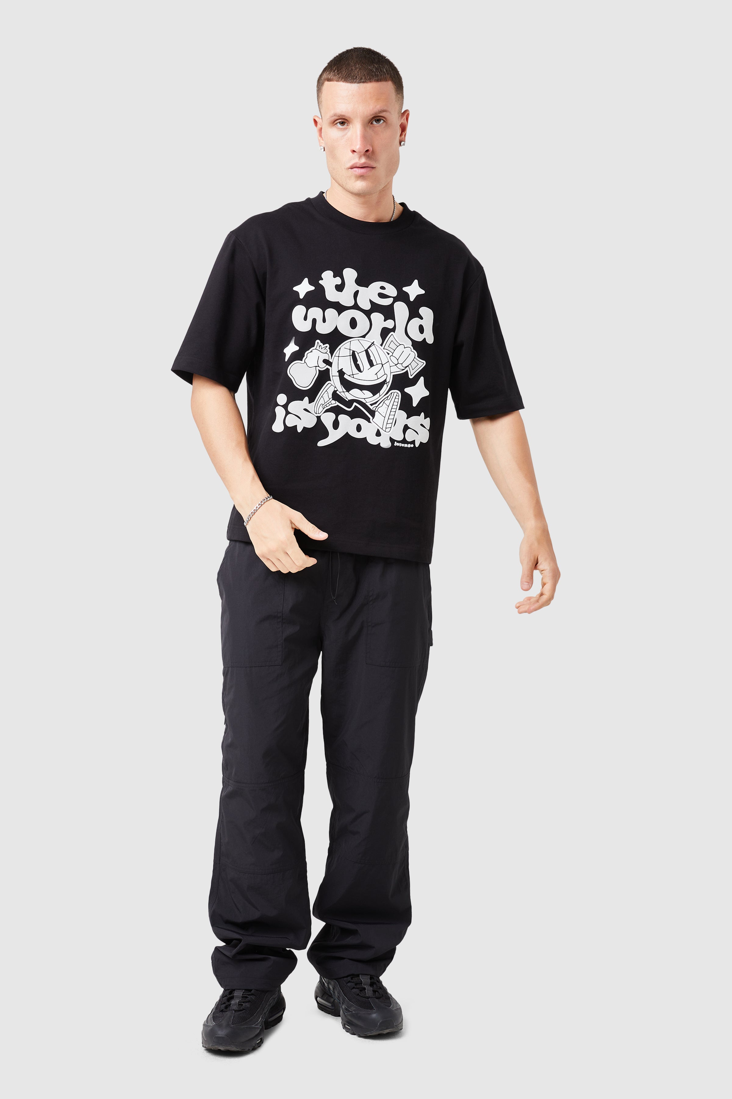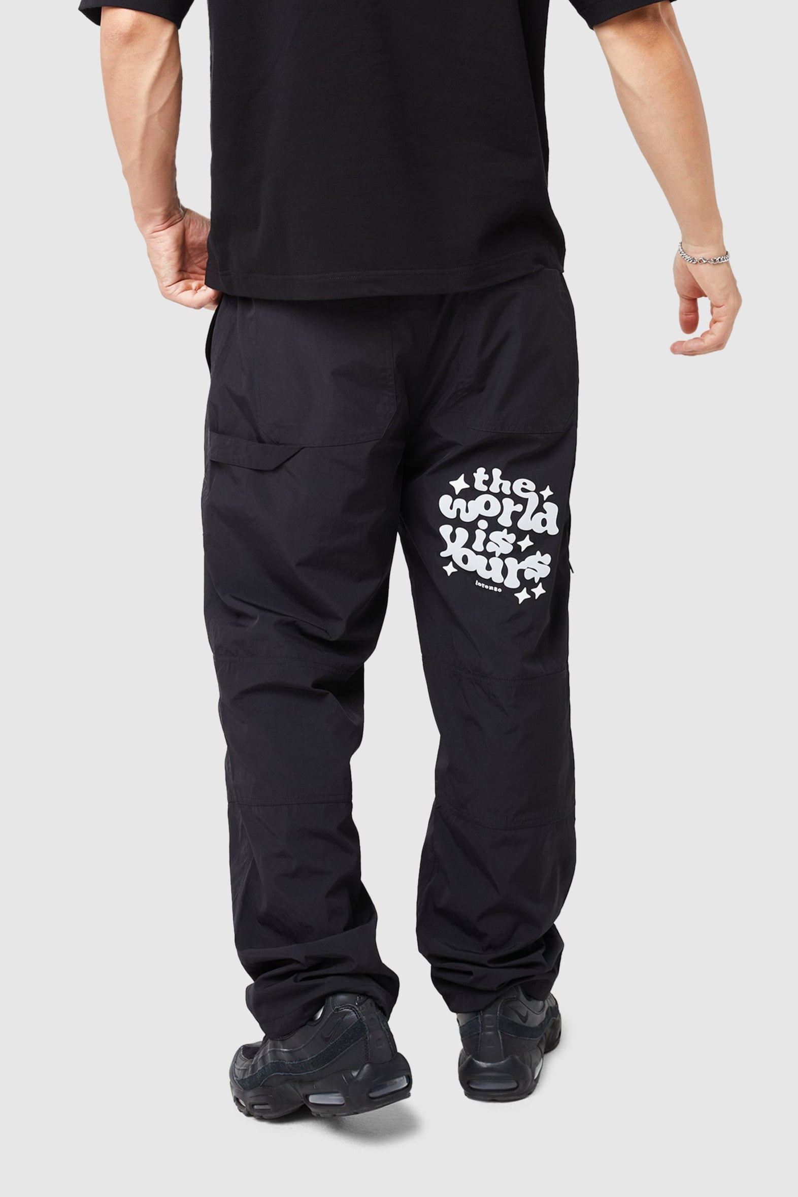 Designed for comfort and durability, the World Is Yours Cargo Pant is a versatile staple in mens cargo pants. Featuring an elasticated waist with bungee pull cord, cargo pockets, and graphic screen/puff print details, these pants effortlessly combine function and style. Pair them with the World Is Yours Light Jacket or an oversized tee to suit any occasion.